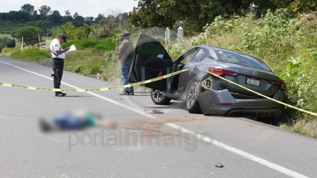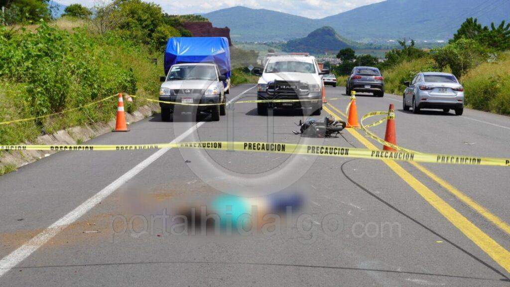 Jacona, Mich.-El conductor de una motocicleta p3rdió la v1da al ser impactado por una camioneta y posteriormente chocar contra un automóvil, sobre la carretera Jacona-Los Reyes.