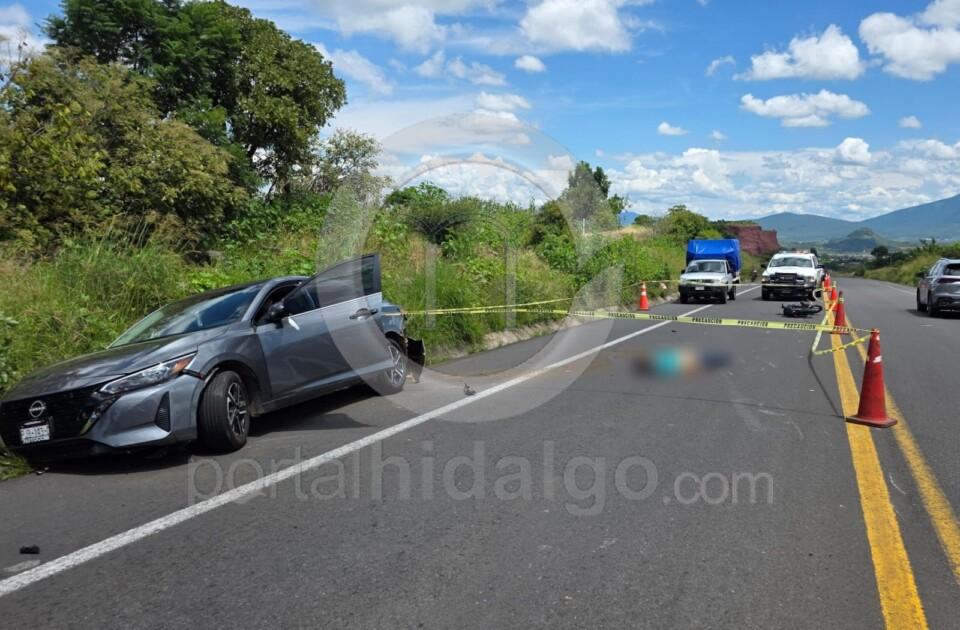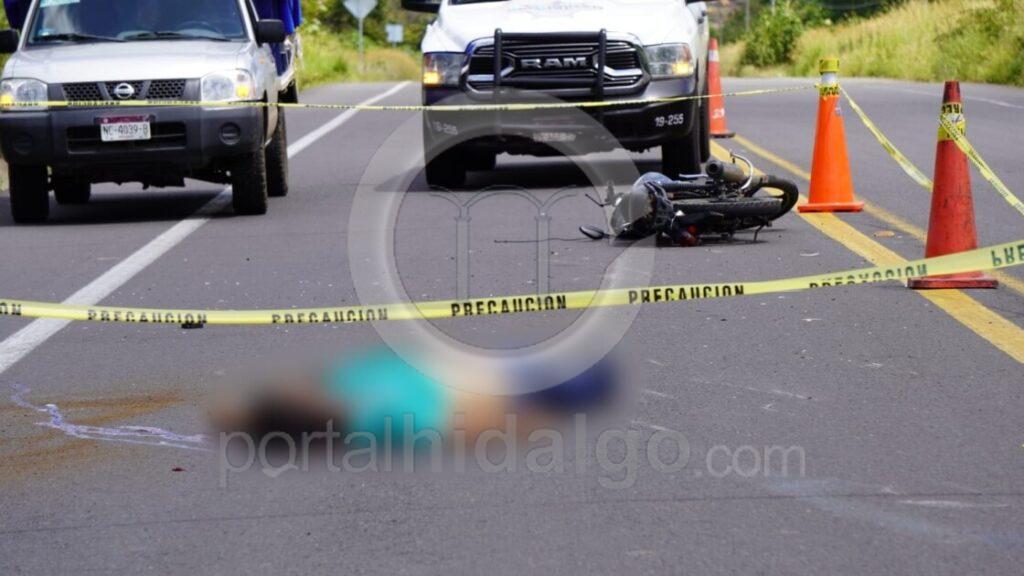 Jacona, Mich.-El conductor de una motocicleta p3rdió la v1da al ser impactado por una camioneta y posteriormente chocar contra un automóvil, sobre la carretera Jacona-Los Reyes.