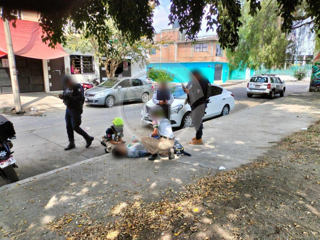 Se supo que el motorista circulaba de oriente a poniente emparejado con un vehículo pick up blanco, cuyo conductor empezó a estrecharle el paso al piloto de la moto, quien fue levemente impactado por dicha unidad y cayó a la orilla de la carpeta asfáltica.
