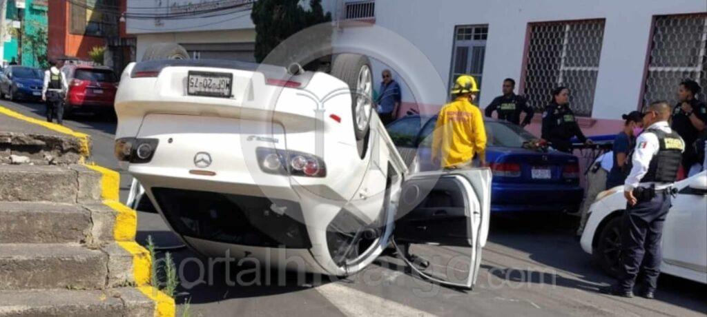 Una mujer embarazada quedó l3sionada tras la volcadura de su vehículo en la colonia Ejidal Ocolusen, ubicada al sur de la ciudad de Morelia.
