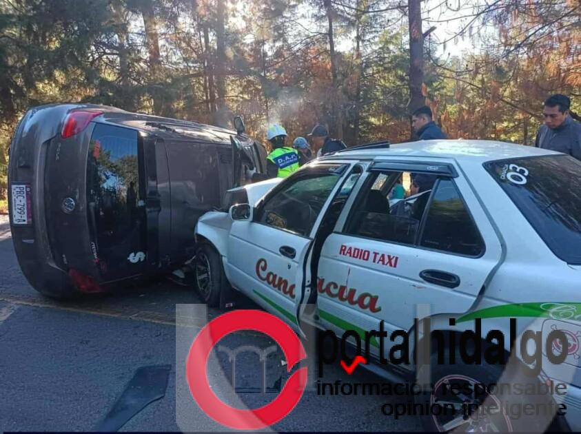 En el incidente estuvieron involucrados tres vehículos: un taxi Nissan Tsuru blanco con placa A662LBU, un Volkswagen Polo café con matrícula PRC799A -el cual terminó volcado-, y una camioneta Toyota Tacoma blanca con placa MT1855W.