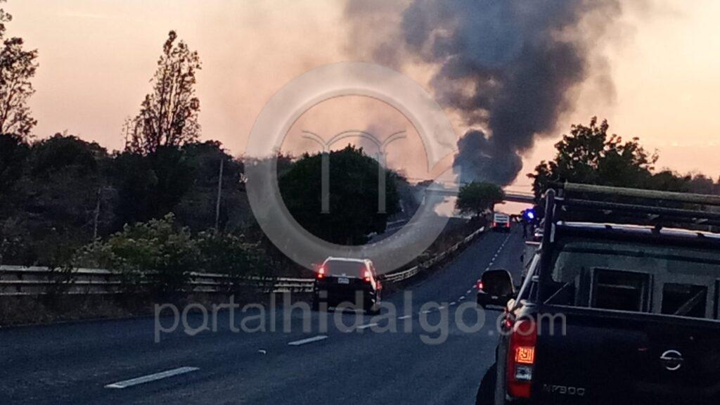 Vulcanos de la Coordinación Estatal de Protección Civil Michoacán (CEPCM) llagaron al sitio, sofocaron la lumbre del tractocamión y combatieron el fuego de la vegetación seca. Por fortuna no hubo lesionados.