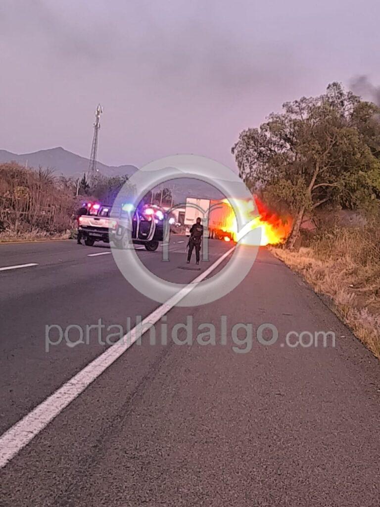 Vulcanos de la Coordinación Estatal de Protección Civil Michoacán (CEPCM) llagaron al sitio, sofocaron la lumbre del tractocamión y combatieron el fuego de la vegetación seca. Por fortuna no hubo lesionados.
