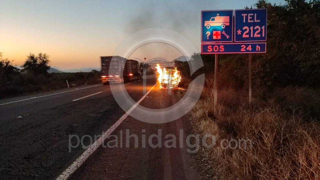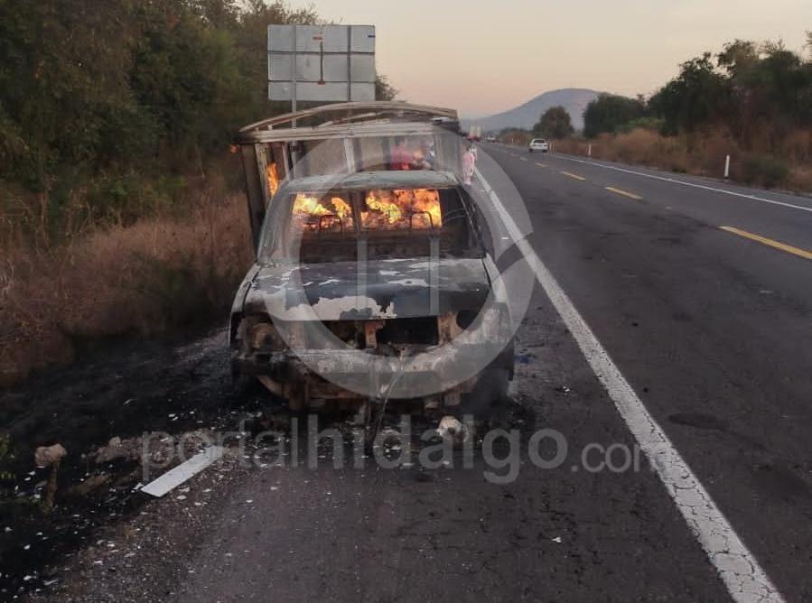 Finalmente, en el municipio de Múgica, a la altura del kilómetro 158, el conductor de una camioneta de redilas se percató que de su unidad comenzó a incendiarse, por lo que se orilló en el acotamiento y se puso a salvo, sin embargo la unidad rápidamente fue convertida en chatarra por el fuego.