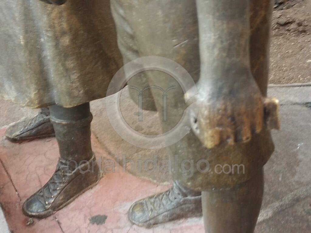 A unas cuadras de la Policía de Morelia y en pleno centro de la ciudad, nuevamente le robaron la maleta a la escultura metálica de los niños españoles.