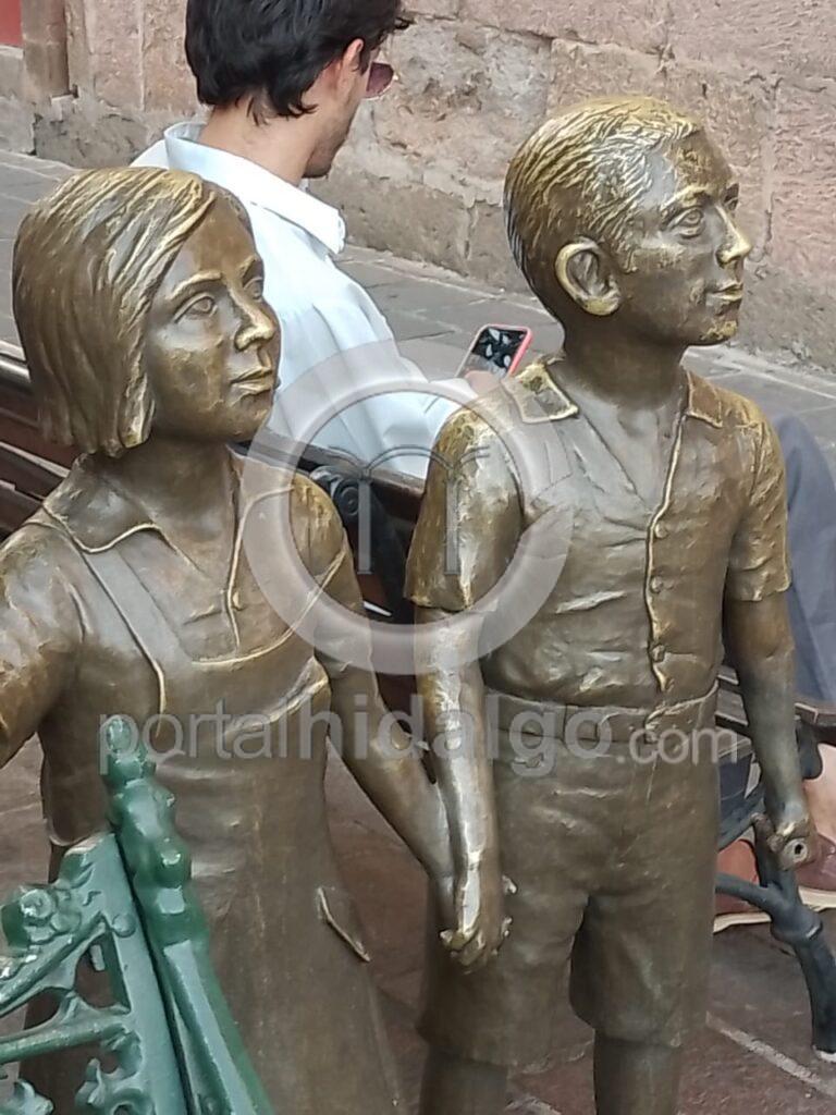 A unas cuadras de la Policía de Morelia y en pleno centro de la ciudad, nuevamente le robaron la maleta a la escultura metálica de los niños españoles.