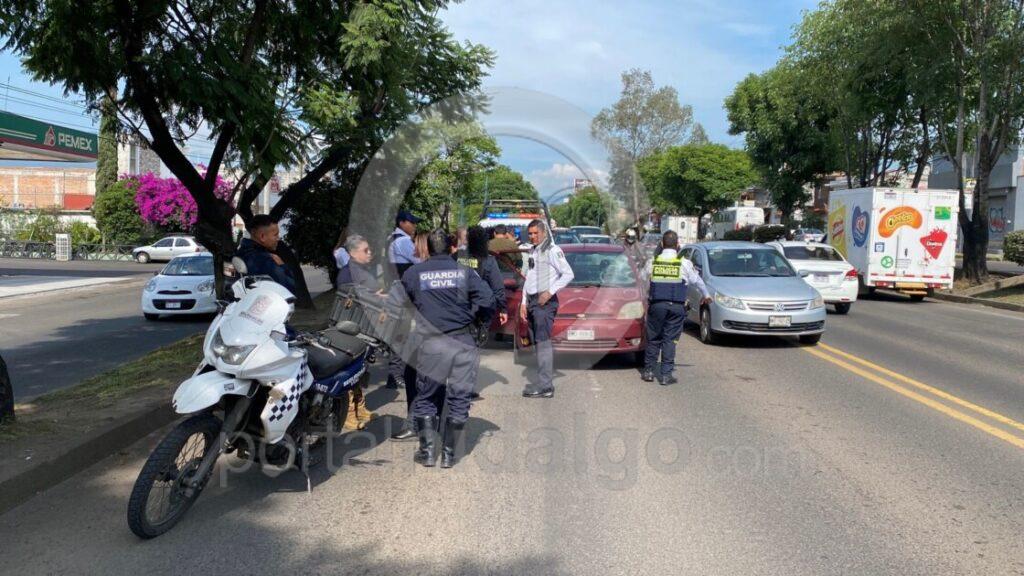 Patrulleros de Tránsito realizaron el peritaje correspondiente para deslindar responsabilidades y retiraron el vehículo involucrado, el cual es uno de la marca Ford Fiesta, color guinda, con placa PMD999C.
