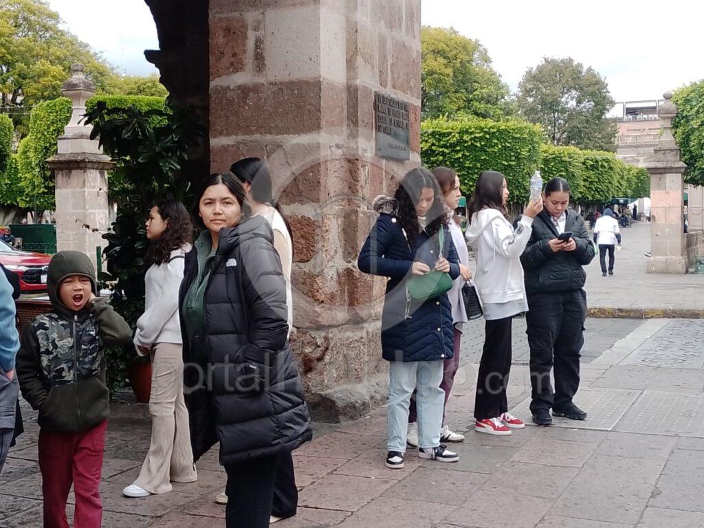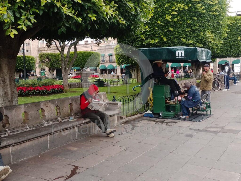 A pesar de las bajas temperaturas, ciudadanos retan al frío y salen a las calles en el primer cuadro de la ciudad de Morelia.