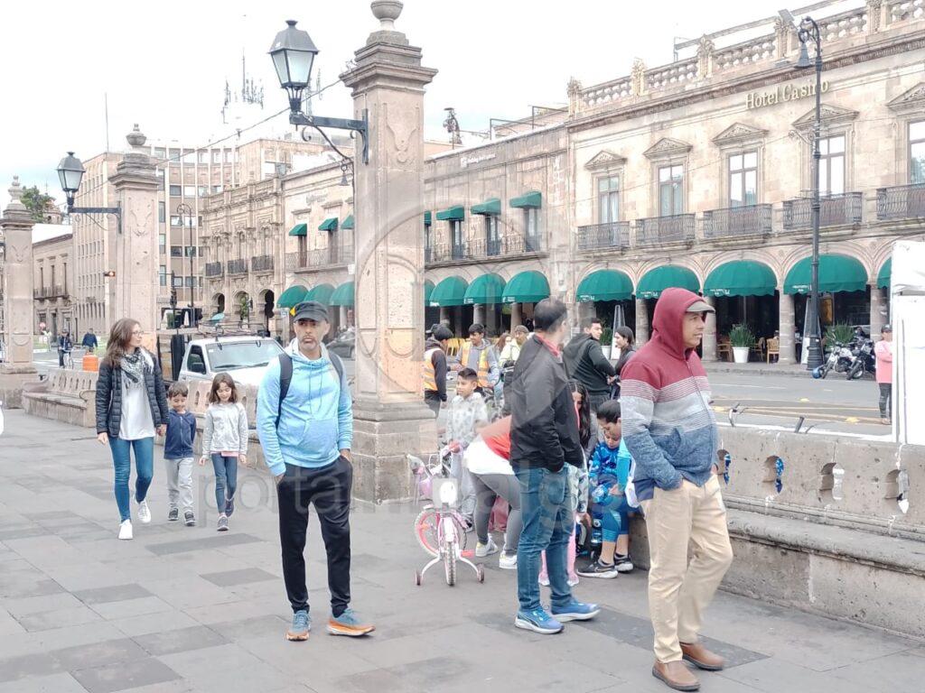 Cabe señalar, que el Centro Histórico mantiene su movimiento en medio del frío y la lluvia que aunque de manera incipiente, se esta presentando este domingo.