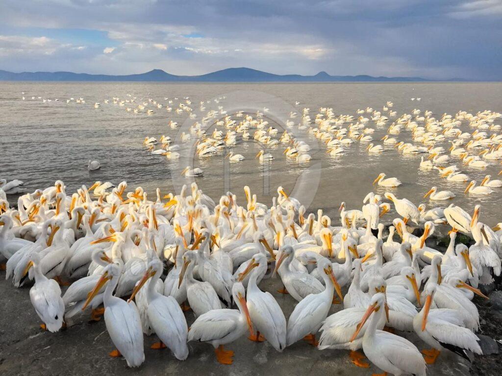 Cojumatlán, Mich.-La isla de Petatán, en este municipio vuelve a pintarse de blanco con la llegada de cerca de 23 mil ejemplares de pelícano borregón. Estas aves migratorias provenientes del sur de Canadá, norte de Estados Unidos y Groenlandia, buscan refugio en el lago de Chapala para resguardarse del invierno.