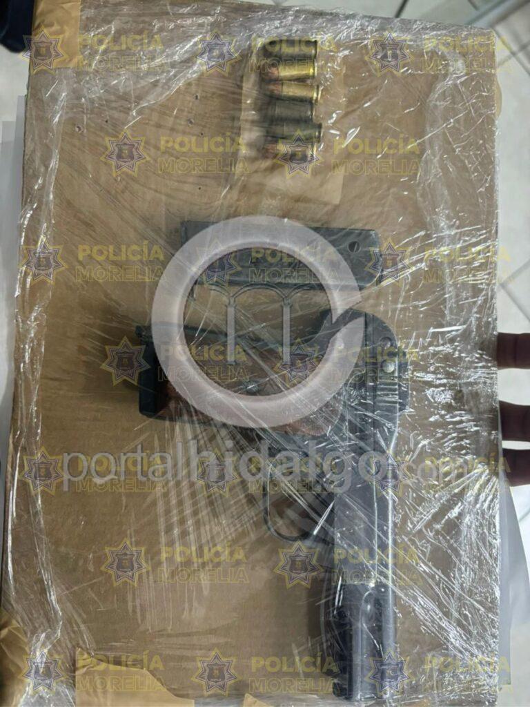 Oficiales de Policía Morelia lograron el aseguramiento de un vehículo, un arma de fuego y la detención de cuatro personas en la colonia Ocolusen.