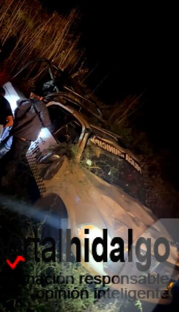 La colisión tuvo lugar en el kilómetro 157, cerca del puente de Cuatro Caminos, donde impactaron camioneta Nissan Frontier, de color blanco, con placas NC-1787-D y una patrulla municipal tipo RAM, con número económico SP08, ambas unidades acabaron severamente dañadas por fuera de la carpeta asfáltica.