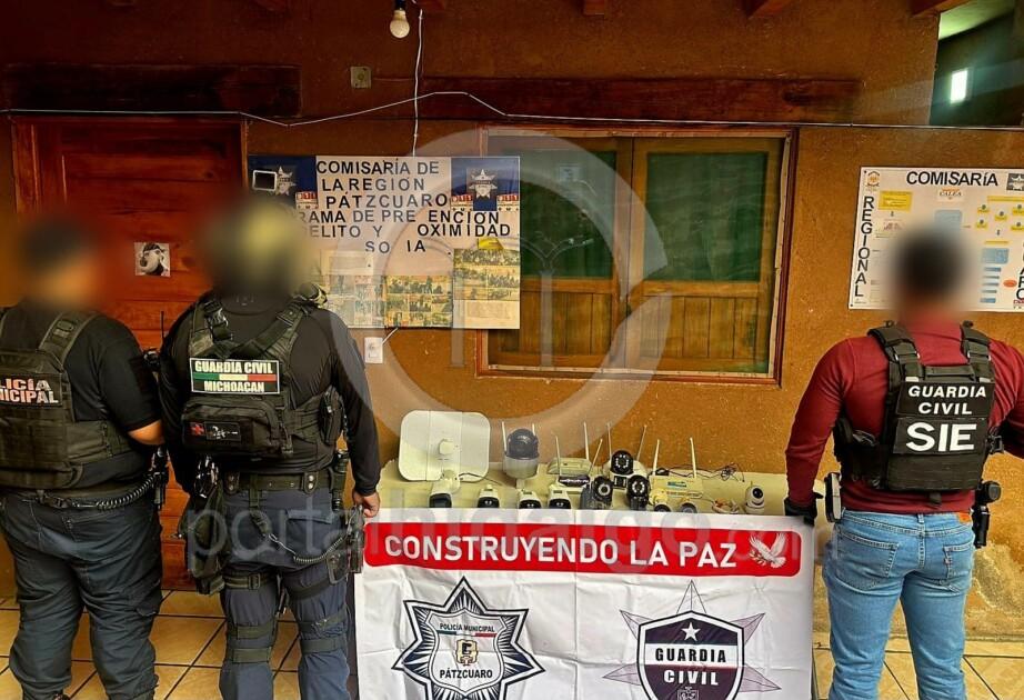 Policías aseguran varias cámaras de vigilancia en distintos puntos de poblaciones cercanas al Lago de Pátzcuaro