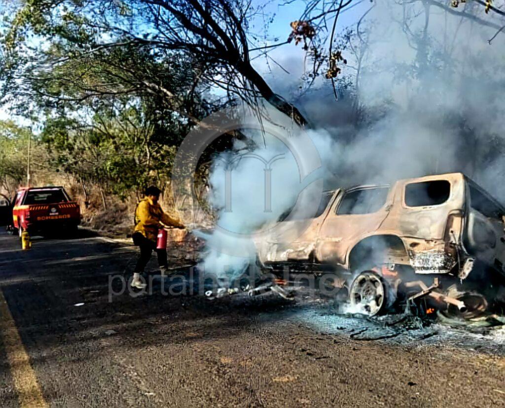 Apatzingán, Mich.-A consecuencia de una aparente falla, una camioneta particular se inc3ndió en la periferia de Apatzingán y quedó convertida en chatarra, por fortuna sus ocupantes descendieron a tiempo y se pusieron a salvo.