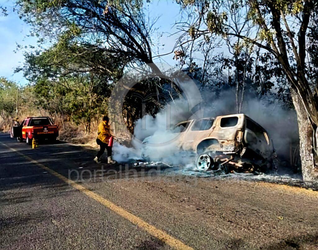 Por aparente falla, camioneta se inc3ndia en el camino a Acahuato
