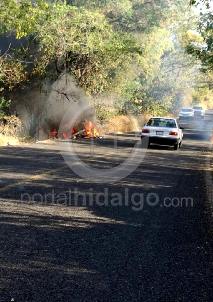 Por aparente falla, camioneta se inc3ndia en el camino a Acahuato