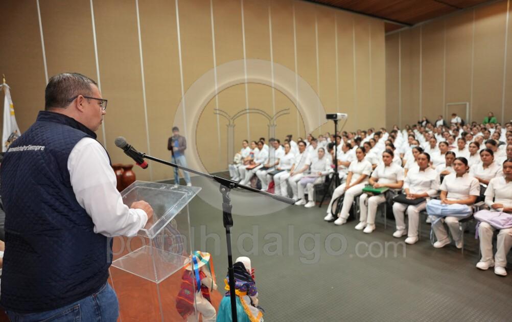 Ustedes van a cambiar la vida de un paciente, van a cambiar la vida de una familia y todo lo que hagan va a marcar también su vida profesional, añadió, si hay alguna situación que ocurra en el servicio social, a través de la Coordinación de Vinculación y Servicio Social coméntenla para poder intervenir a tiempo y generarles una buena dinámica en su servicio social y que no sea un motivo para que ustedes tengan que desertar, “nosotros vamos a estar acompañándolos no solamente en su toma de plaza también desde el día que inicien su servicio social hasta el día que culminen”.