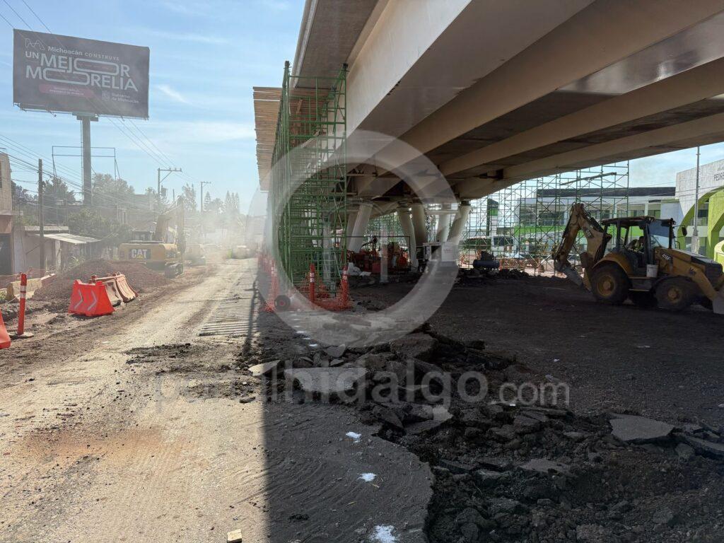 Por trabajos de obras de drenaje y pavimentación con concreto hidráulico, la Secretaría de Comunicaciones y Obras Públicas realizó un cierre temporal de la lateral a nivel con dirección Morelia-Quiroga, sobre el Paso Superior Vehicular Catrinas, a la altura de Villas del Pedregal, por lo que se habilitó un carril en la parte superior para el tránsito.