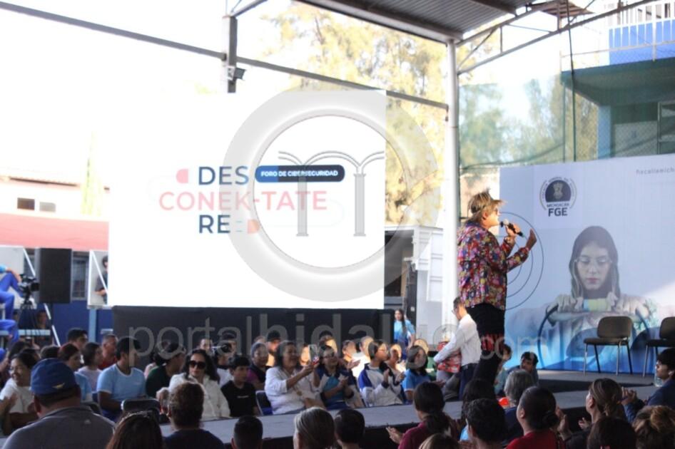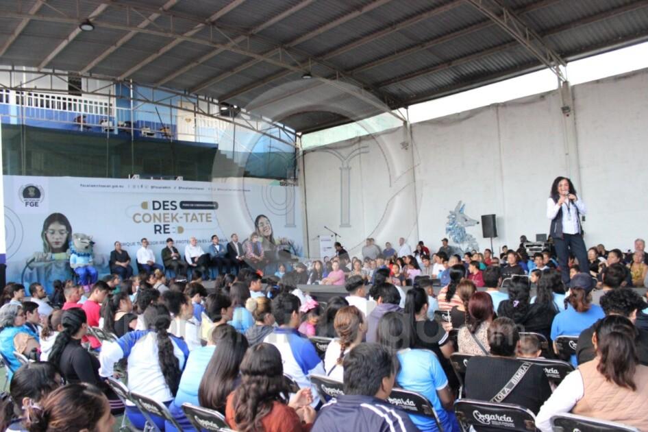 Zamora, Mich.- Con el propósito de prevenir delitos cometidos a través de la WEB y fomentar el uso responsable de las redes sociales, la Fiscalía General del Estado de Michoacán (FGE) llevó a cabo el foro denominado “DESKONEC-TATE y REKONEC-TATE”, dirigido a estudiantes del COBAEM Zamora.