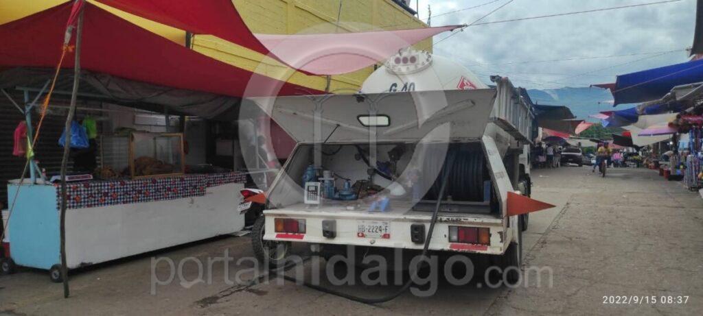 Huetamo, Mich.-Una pipa de gas LP que abastecía cilindros en el Mercado Municipal sin cumplir con las medidas de seguridad correspondientes, fue detectada por elementos de Protección Civil, quienes suspendieron la maniobra debido al riesgo que representaba para comerciantes y clientes del citado inmueble.