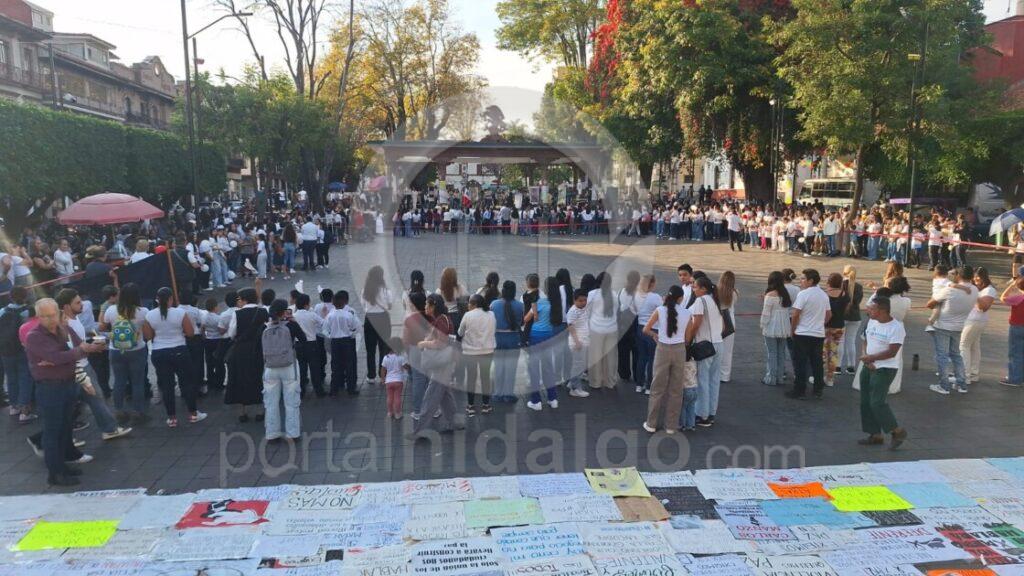 Primeramente, cientos de estudiantes de escuelas católicas se reunieron en la Pérgola Municipal para rezar un rosario y pedir por el descanso eterno de Carlos Manzo, así como por justicia, paz y seguridad para Uruapan, Michoacán y México.