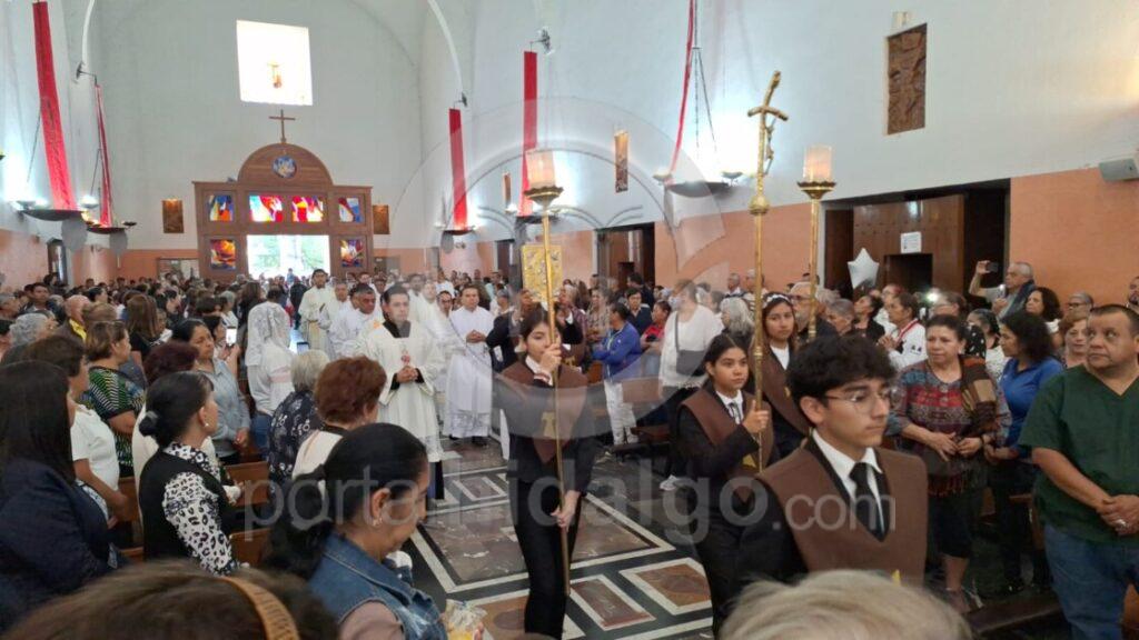 En el recinto religioso, la alcaldesa sustituta, Grecia Quiroz estuvo fuertemente custodiada por elementos federales y al término de la misa se retiró por el área de acceso de los sacerdotes y personas que laboran en el templo.