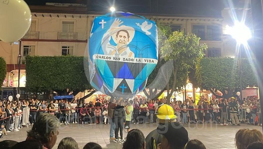 Posteriormente se rezó otro rosario en la Pérgola Municipal como fin del novenario y se lanzó al cielo un enorme globo de cantoya con la figura del alcalde Carlos Manzo, todo ello entre aplausos y gritos exigiendo justicia por el artero crimen.