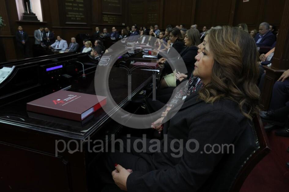 En el marco de la Sesión Solemne realizada este miércoles, con motivo de la entrega del Cuarto Informe de Gobierno de Alfredo Ramírez Bedolla, gobernador del estado, la presidenta de la Junta de Coordinación Política del Congreso del Estado destacó los diversos avances reportados por el titular del Ejecutivo Estatal, como el impulso del desarrollo de infraestructura carretera y de movilidad urbana en la entidad, así como el fortalecimiento los programas de bienestar.