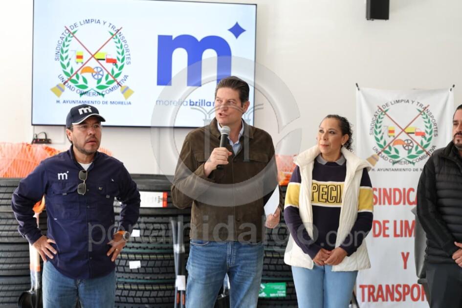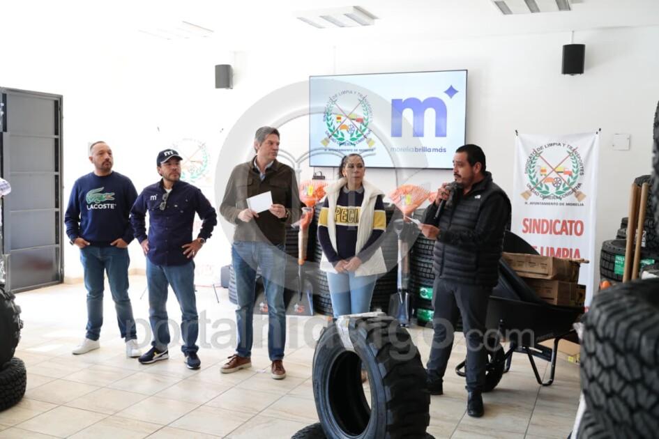 En una clara muestra de respaldo al esfuerzo que diariamente realizan las y los integrantes del Sindicato de Limpia y Transportes de Morelia, el presidente municipal Alfonso Martínez Alcázar, entregó herramientas y neumáticos para las unidades en donde las y los empleados municipales salen a las calles a mantener limpia la ciudad.