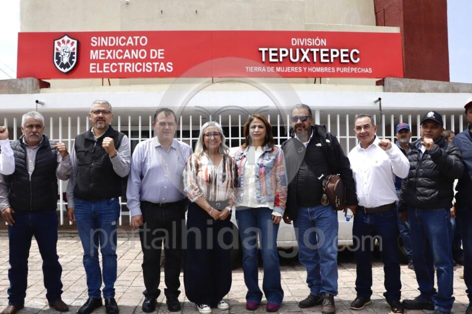 Contepec, Mich.-En el marco de una asamblea informativa legislativa, la diputada Fabiola Alanís Sámano se encontró con las y los trabajadores del Sindicato Mexicano de Electricistas, división Tepuxtepec, donde fue recibida por el secretario del Trabajo, Israel Núñez Delgadillo, quien reconoció el apoyo que la legisladora les brindó en el período de mayor represión.