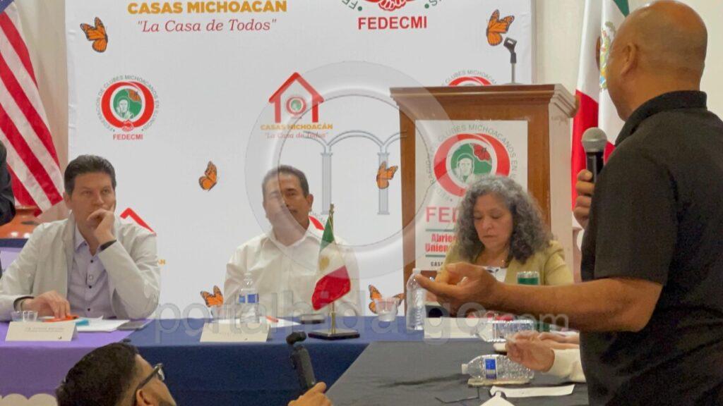 Participaron también Rubén Chávez, Presidente de la Federación de Clubes Michoacanos de Illinois; Maggi Lugo, directora de Casa Michoacán, Artemio Arreola, presidente de Casa Michoacán y Daniel Aguilar, titular de la Dirección de Atención al Migrante del Gobierno de Morelia.
