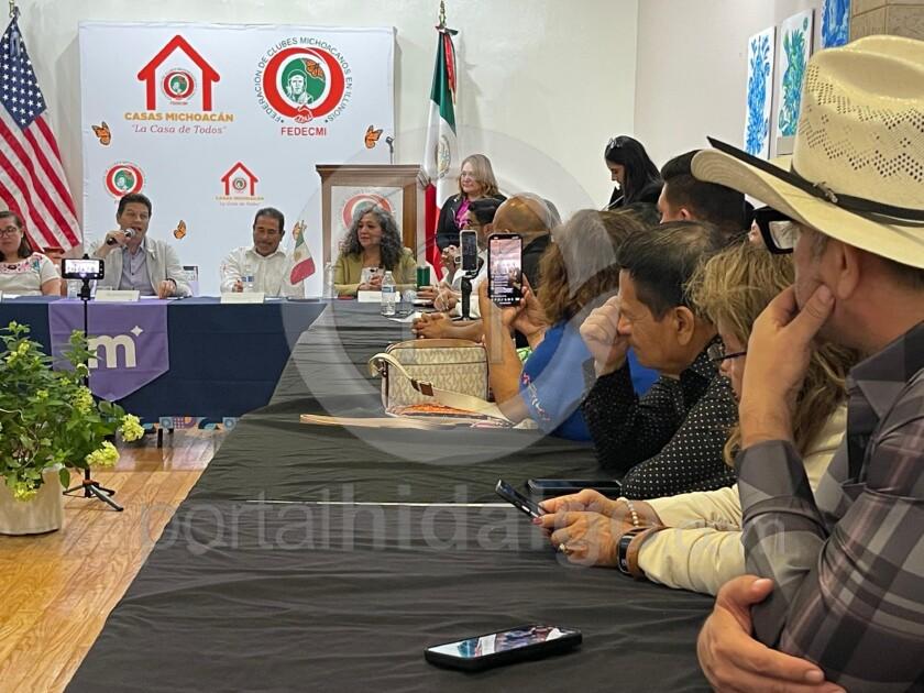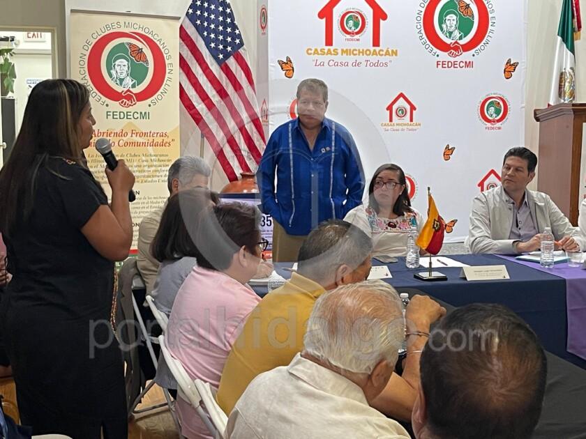 Participaron también Rubén Chávez, Presidente de la Federación de Clubes Michoacanos de Illinois; Maggi Lugo, directora de Casa Michoacán, Artemio Arreola, presidente de Casa Michoacán y Daniel Aguilar, titular de la Dirección de Atención al Migrante del Gobierno de Morelia.