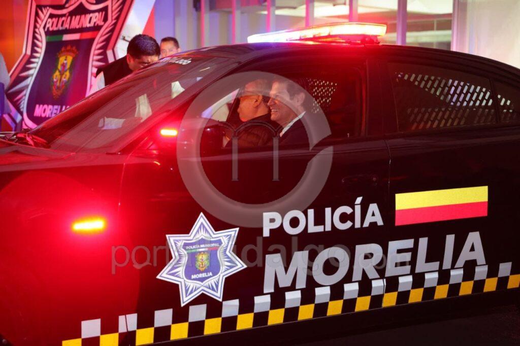 Una vez hecha la develación de la nueva imagen, el jefe de la comuna moreliana se dirigió a la Plaza San Juan, donde presentó los nuevos vehículos a los vecinos. Posteriormente, encabezó la entrega oficial de la nueva flotilla a la Policia de Morelia, en la explanada Bicentenario: cien nuevas patrullas, 80 RAM y 20 vehículos tipo Charger.