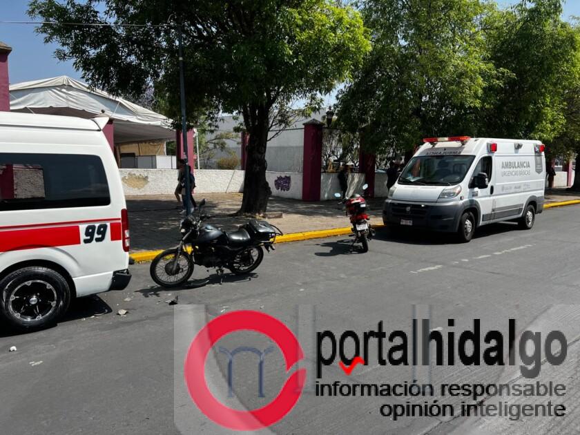 Un repartidor de Domino’s Pizza resultó lesionado tras protagonizar un choque por alcance cuando circulaba a bordo de una motocicleta sobre la Avenida Acueducto, a la altura de la entrada de la Unidad Deportiva Venustiano Carranza en Morelia.