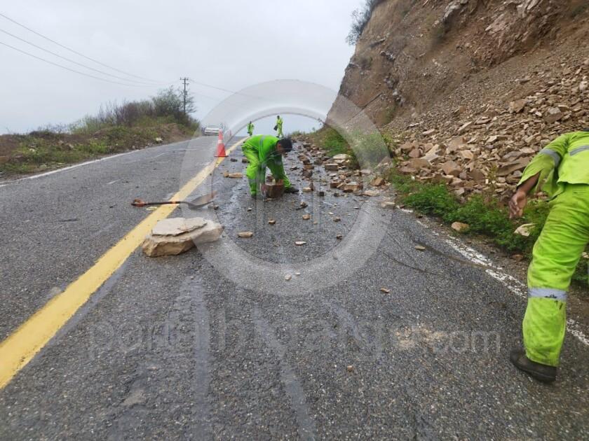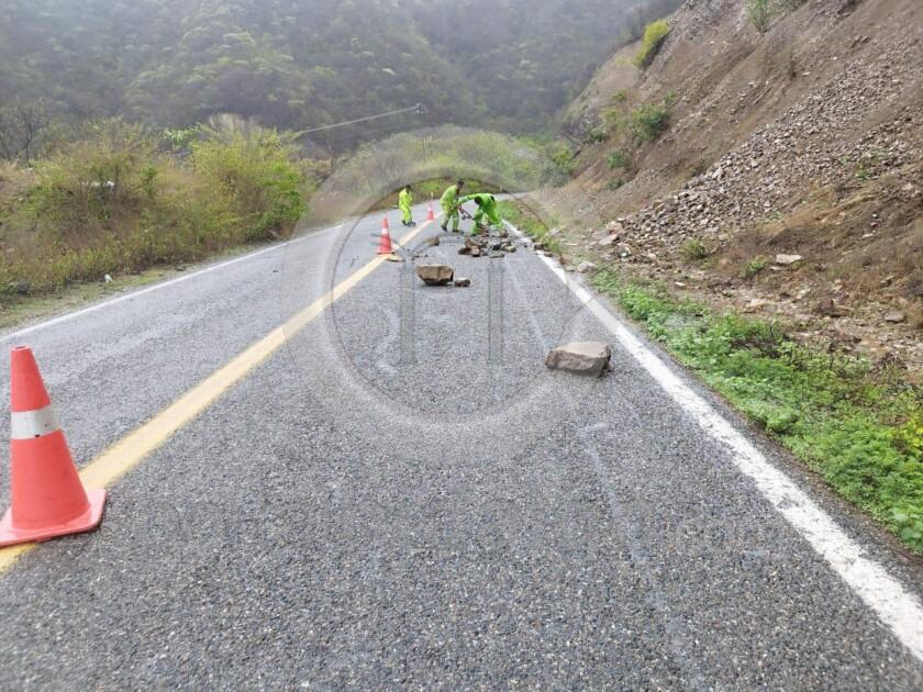 En el acceso carretero Playa Azul-Manzanillo, cuadrillas de la Secretaría de Comunicaciones y Transportes de Michoacán (SICT) retiraron rocas y lodo de varios tramos cercanos a los límites de Michoacán con Colima, resultado de deslaves provocados por la saturación de los cerros.