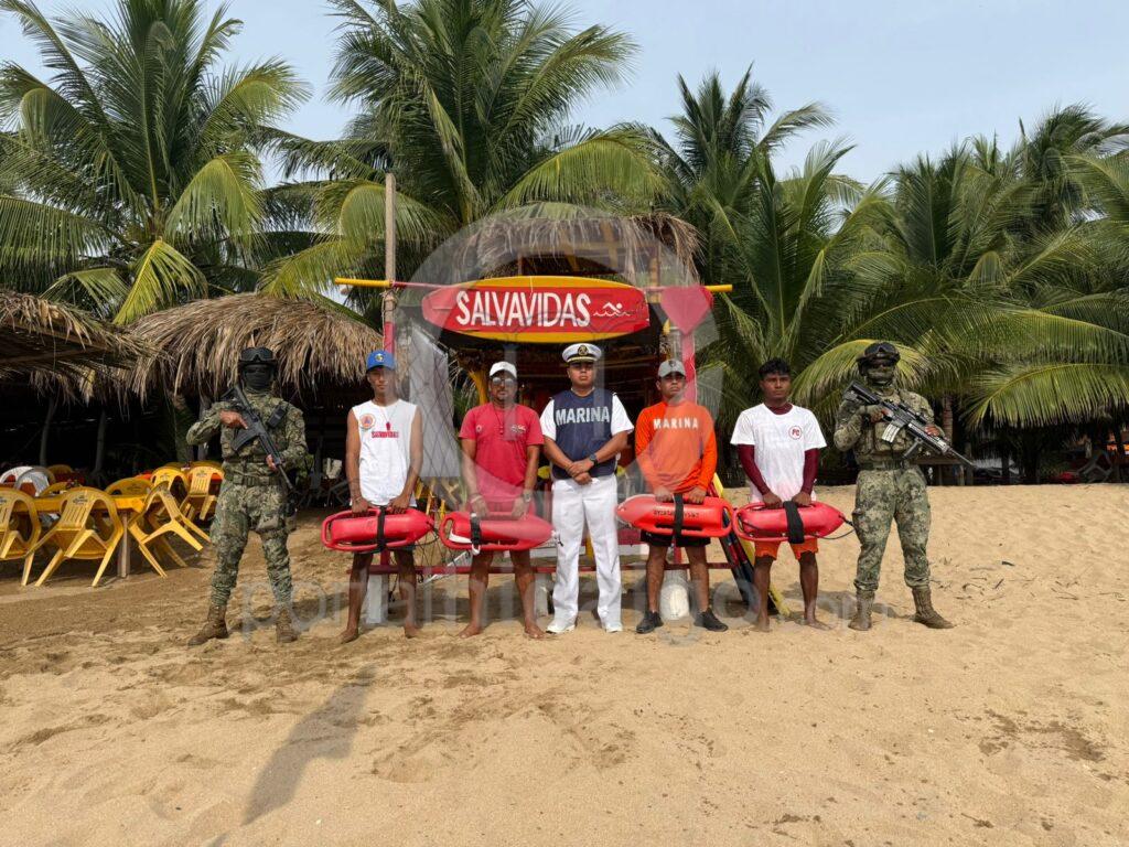 Para garantizar la seguridad de turistas y de ciudadanos de esta ciudad, el operativo de vigilancia estuvo a cargo de un equipo compuesto por 15 salvavidas de Protección Civil Municipal, apoyados por 14 salvavidas adicionales contratados exclusivamente para esta temporada, todos financiados por el H. Ayuntamiento de Lázaro Cárdenas.
