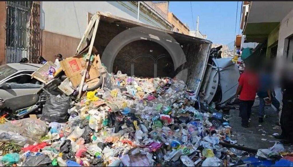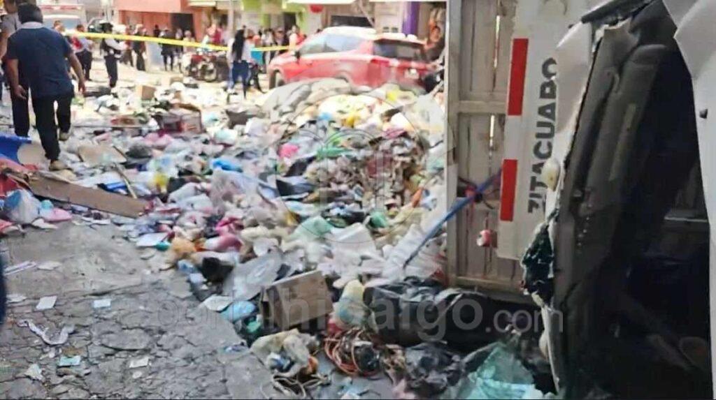 Zitácuaro, Mich.-El choque volcadura de un camión de basura, percance registrado la tarde de este lunes en la ciudad, dejó como saldo un mu3rto y tres h3ridos, informaron autoridades policiales las que agregaron que al parecer las víctimas son recolectores.