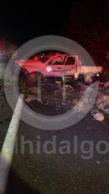 De forma preliminar se supo que la camioneta patrulla con número económico C-1008, se proyectó contra la cuneta de desagüe pluvial y terminó con el frente severamente dañado.