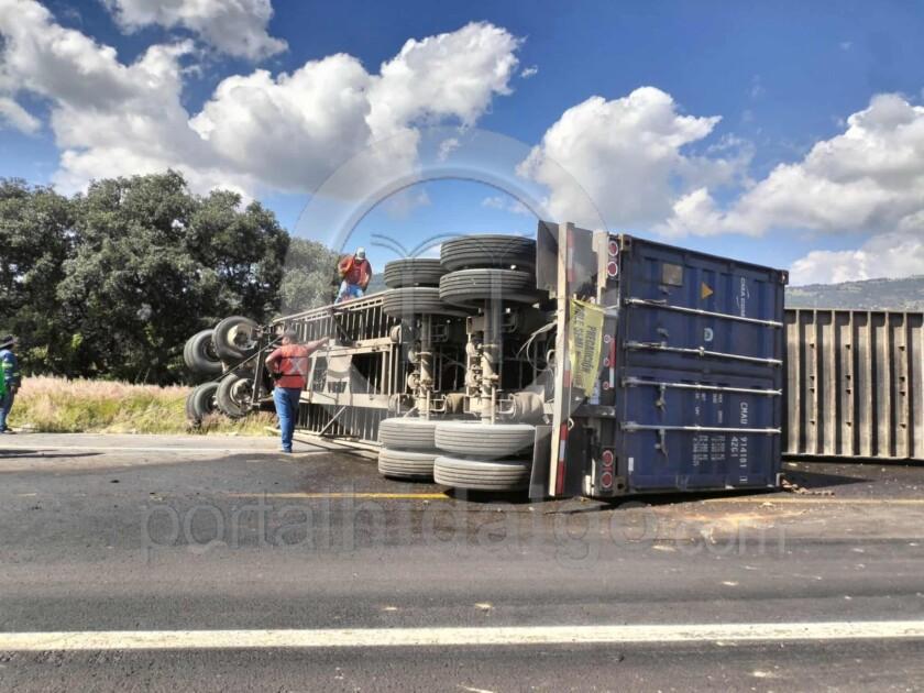 Un tractocamión volcó y su cabina ardió en llamas durante la mañana de este viernes sobre la autopista Pátzcuaro-Cuitzeo, dentro del municipio de Morelia.