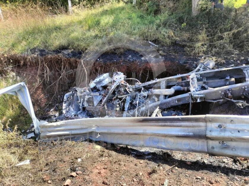 Se apreció los dos remolques de la unidad quedaron atravesados, en tanto que la cabina cayó a un desnivel donde se incendió por completo y el conductor alcanzó a salir a tiempo. Posteriormente arribaron socorristas y bomberos municipales, éstos últimos sofocaron la lumbre.