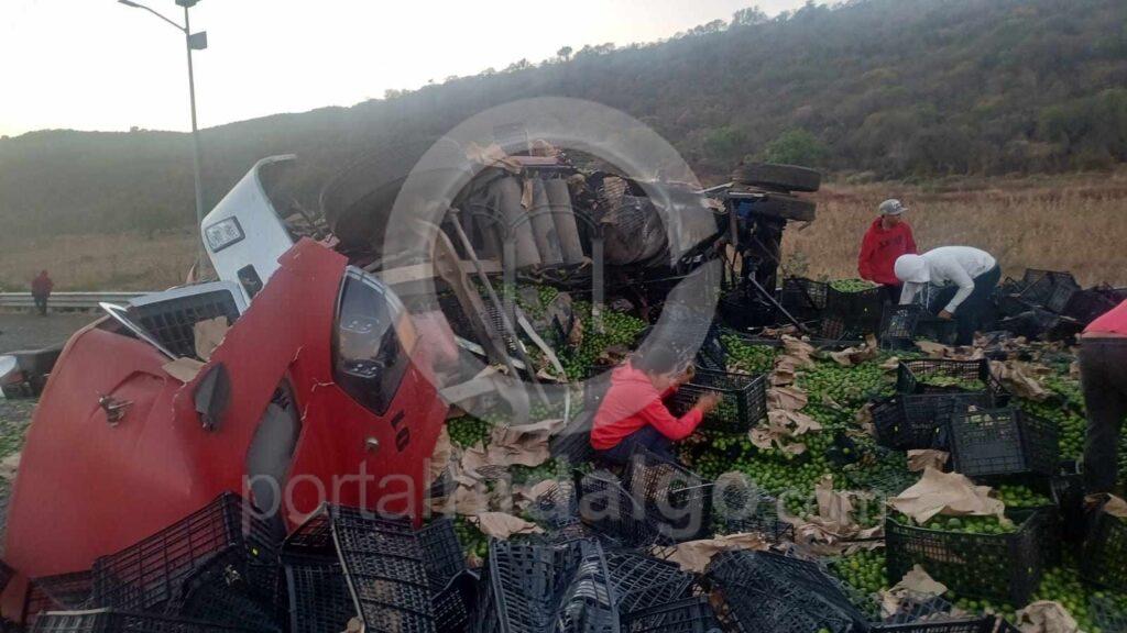 El conductor resultó con algunos golpes y fue auxiliado por socorristas. Algunas personas se detuvieron y aprovecharon el siniestro para rapiñar varias cajas con limones.