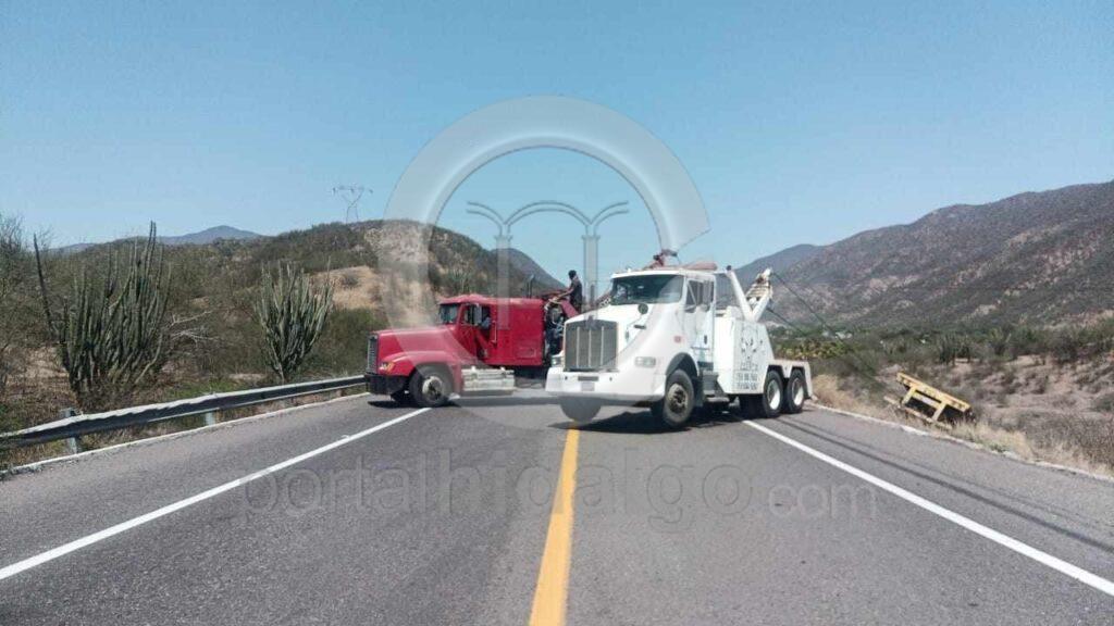 Primeramente, en el también llamado “Libramiento Morelia”, ya en las cercanías de la autopista México-Guadalajara, un tractocamión de color rojo acabó con la cabina destrozada y su carga regada en la zona.