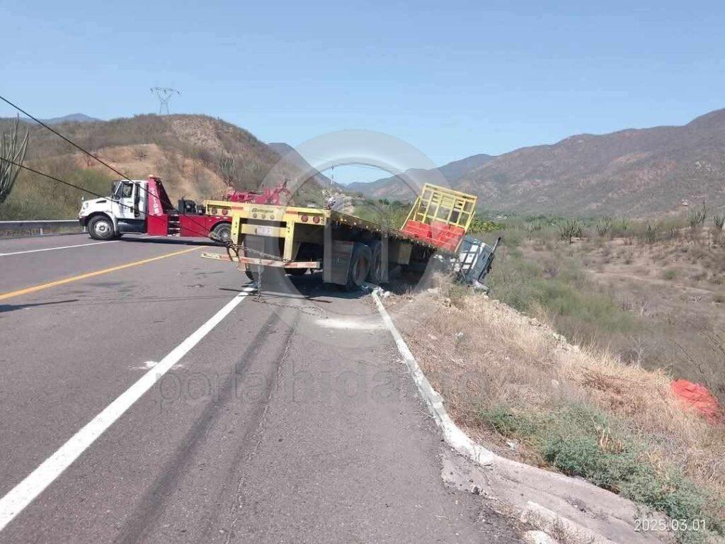 En distintos hechos, un camión cargado con limones volcó en la autopista Pátzcuaro-Cuitzeo, mientras que en la autopista Siglo XXI, un tráiler junto con su plataforma, se precipitaron a un desnivel, con saldo preliminar de dos lesionados y cuantiosos daños materiales.