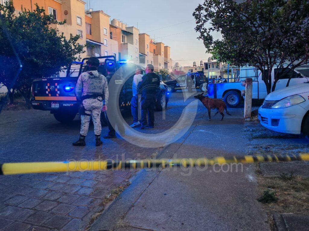 De acuerdo con la información recabada en el lugar de los hechos, un masculino recibió un impacto de proyectil en la cabeza y tras los disparos corrió dejando a su paso un rastro de sangre que a unos metros se pierde a mitad de la calle, lo que hace suponer que fue retirado del área en algún vehículo, ignorándose hasta el momento su identidad y paradero.