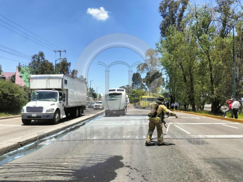 El motor de un tractocamión pipa que transportaba 36 mil 400 litros de gasolina comenzó a incendiarse, incidente registrado sobre el Libramiento Poniente de Morelia, trascendió en la cobertura de la noticia.
