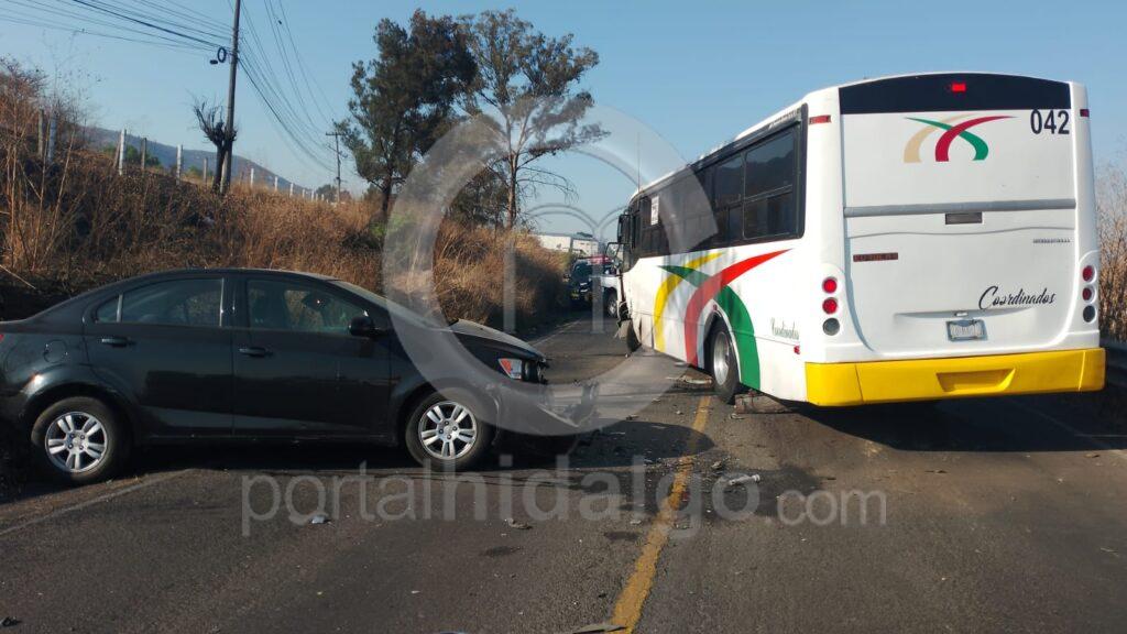 Se apreció que el auto es uno de color negro. En cuanto al camión, éste es de la línea Coordinados, con número económico 042, cuyo chofer lo dejó abandonado y los usuarios también se retiraron.