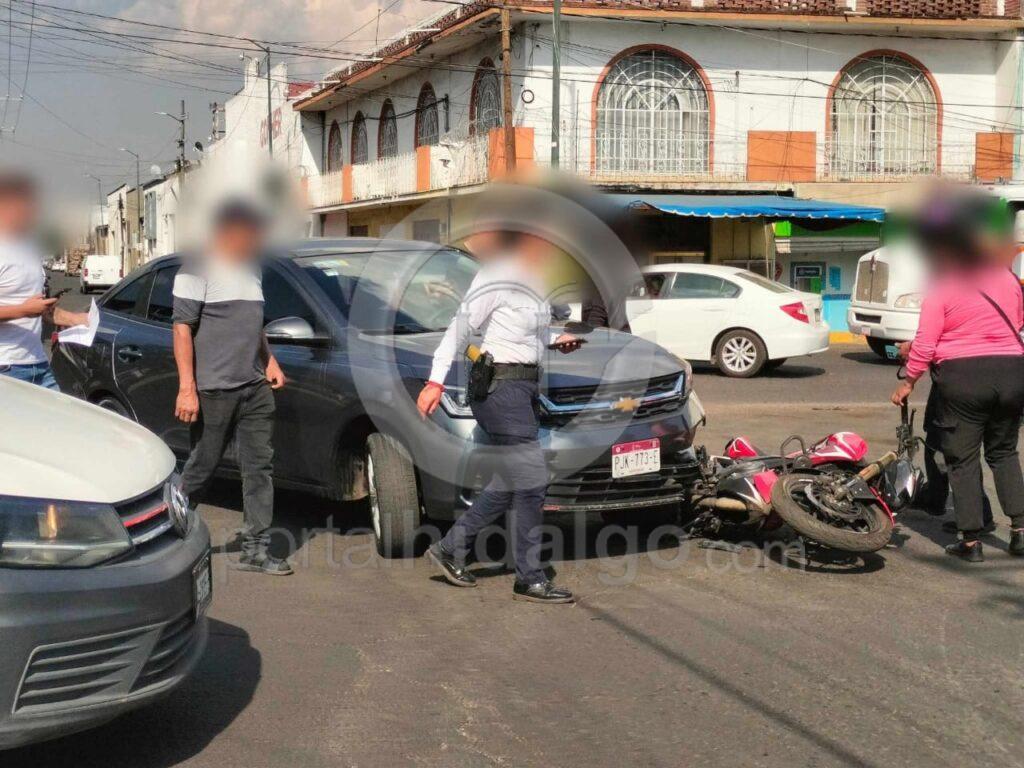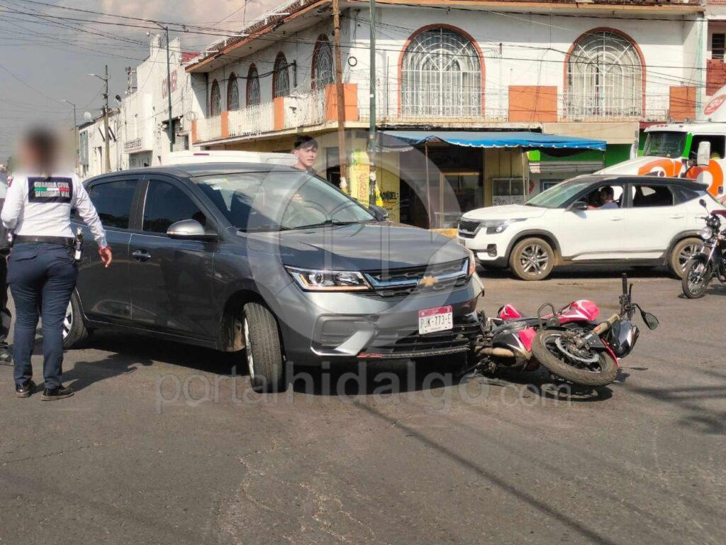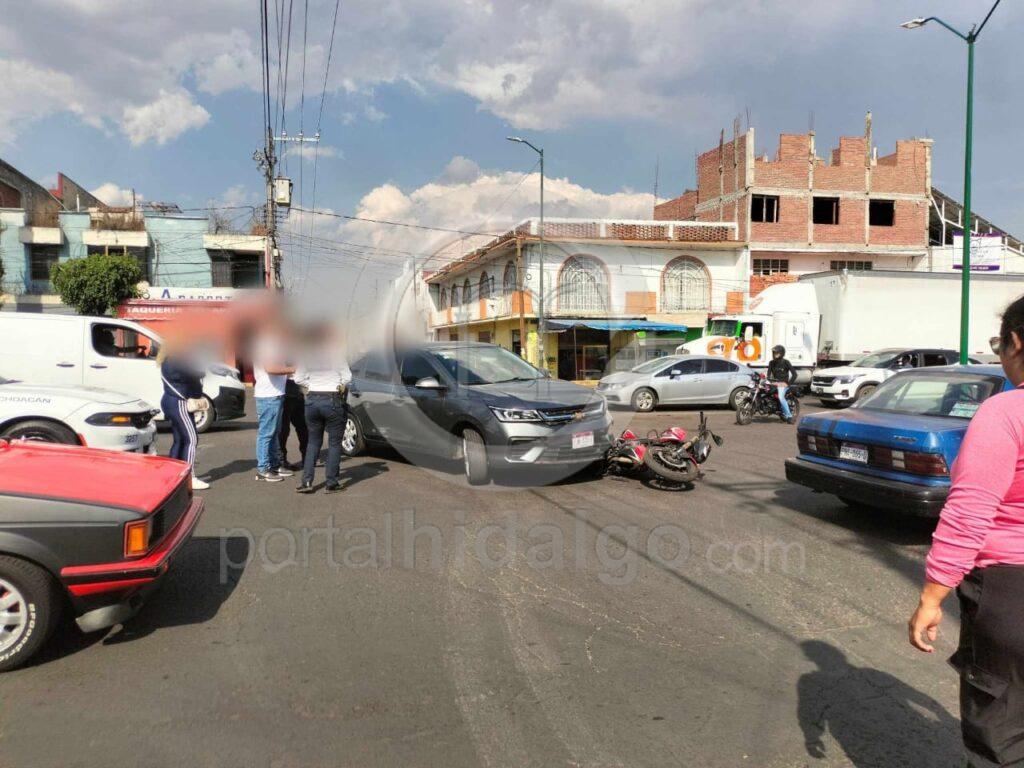 Un automovilista y el conductor de una motocicleta protagonizaron un choque sobre la avenida Escuadrón 201 y/o Décima, en la zona poniente de Morelia, lo que dejó levemente lastimado al segundo.