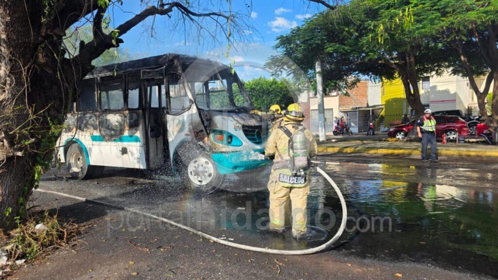 Zamora, Mich.-La tarde de este viernes, un camión de pasajeros ardió en llamas en el Infonavit Arboledas Tercera Sección de esta ciudad. En el lugar de los hechos varias personas informaron que desconocidos en motocicleta provocaron el incendió, sin embargo, el departamento de comunicación social del ayuntamiento local refiere que se trató de un cortó circuito.
