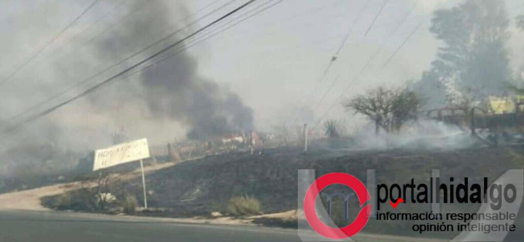 La lumbre arrasó rápidamente con el pasto seco y llegó hasta los restos oxidados e inservibles de algunos automotores. Bomberos acudieron al sitio para sofocar las llamas.