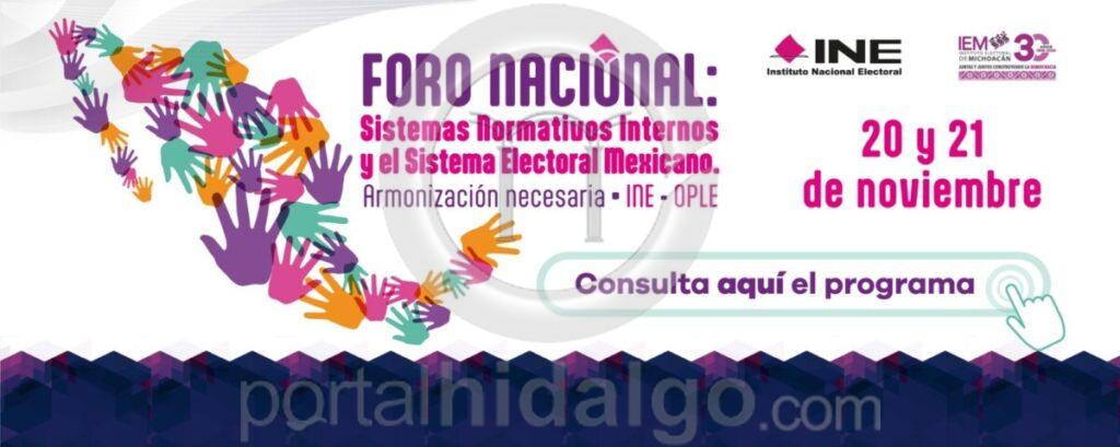 El Instituto Electoral de Michoacán (IEM) será sede del Foro Nacional “Sistemas Normativos Internos y el Sistema Electoral Mexicano. Armonización Necesaria INE–OPLE”, que se llevará a cabo los próximos 20 y 21 de noviembre en la ciudad de Morelia, Michoacán, con la asistencia de autoridades del Instituto Nacional Electoral (INE), del Tribunal Electoral del Poder Judicial de la Federación (TEPJF), de tribunales electorales locales y de los organismos públicos locales electorales (OPLEs) del país.